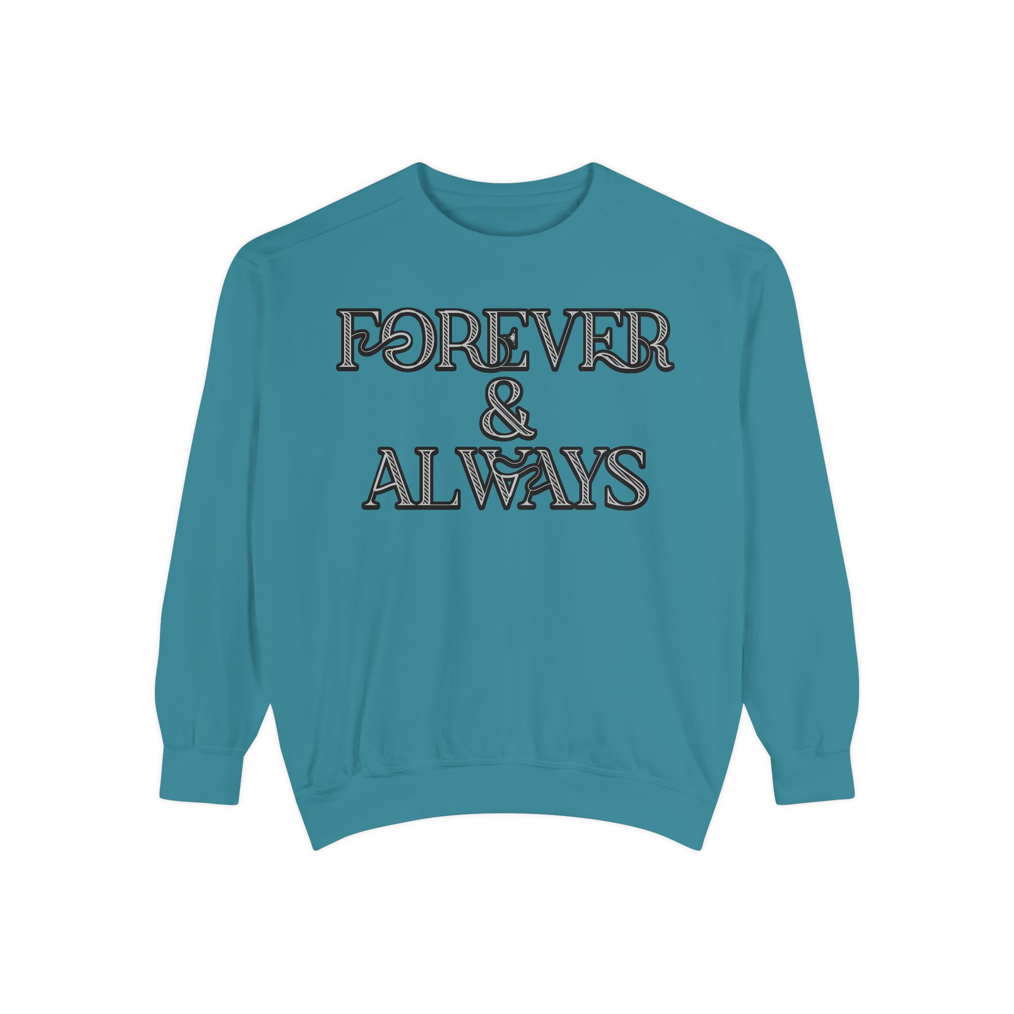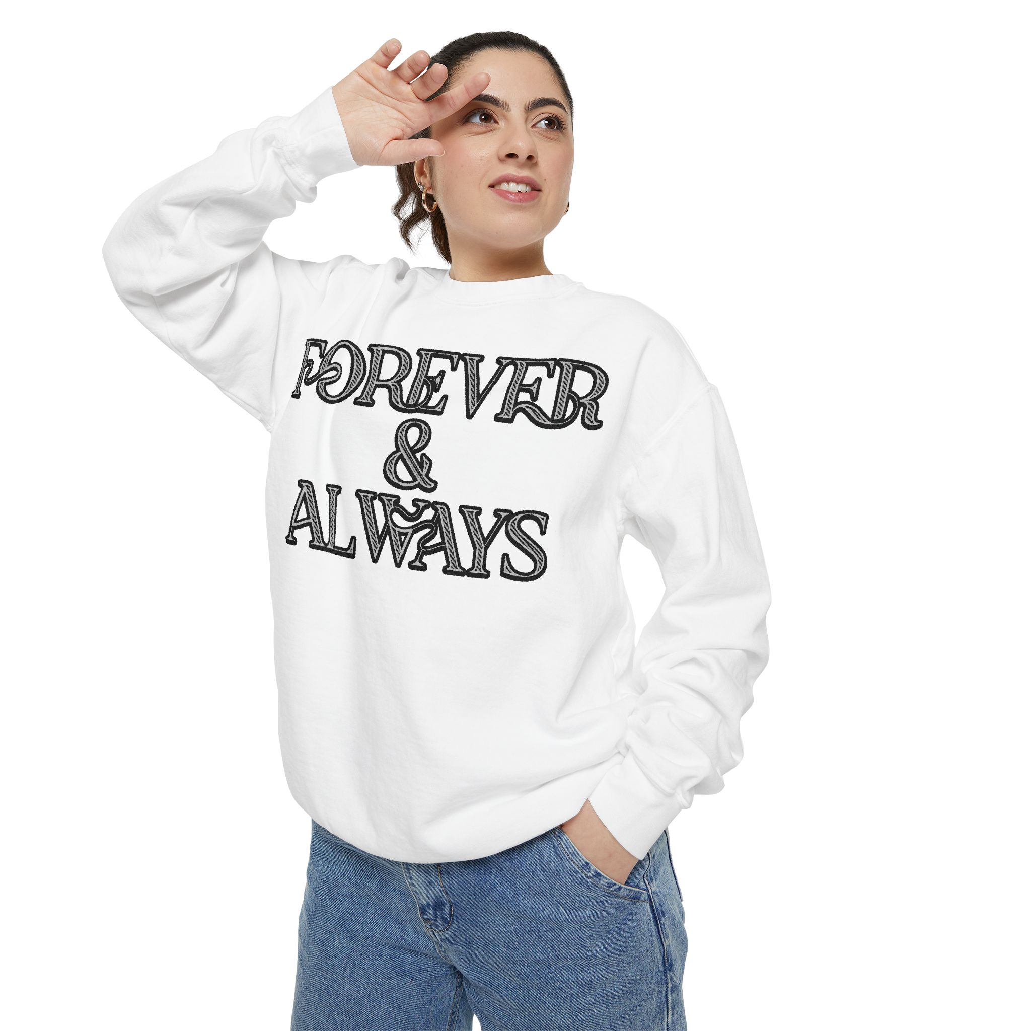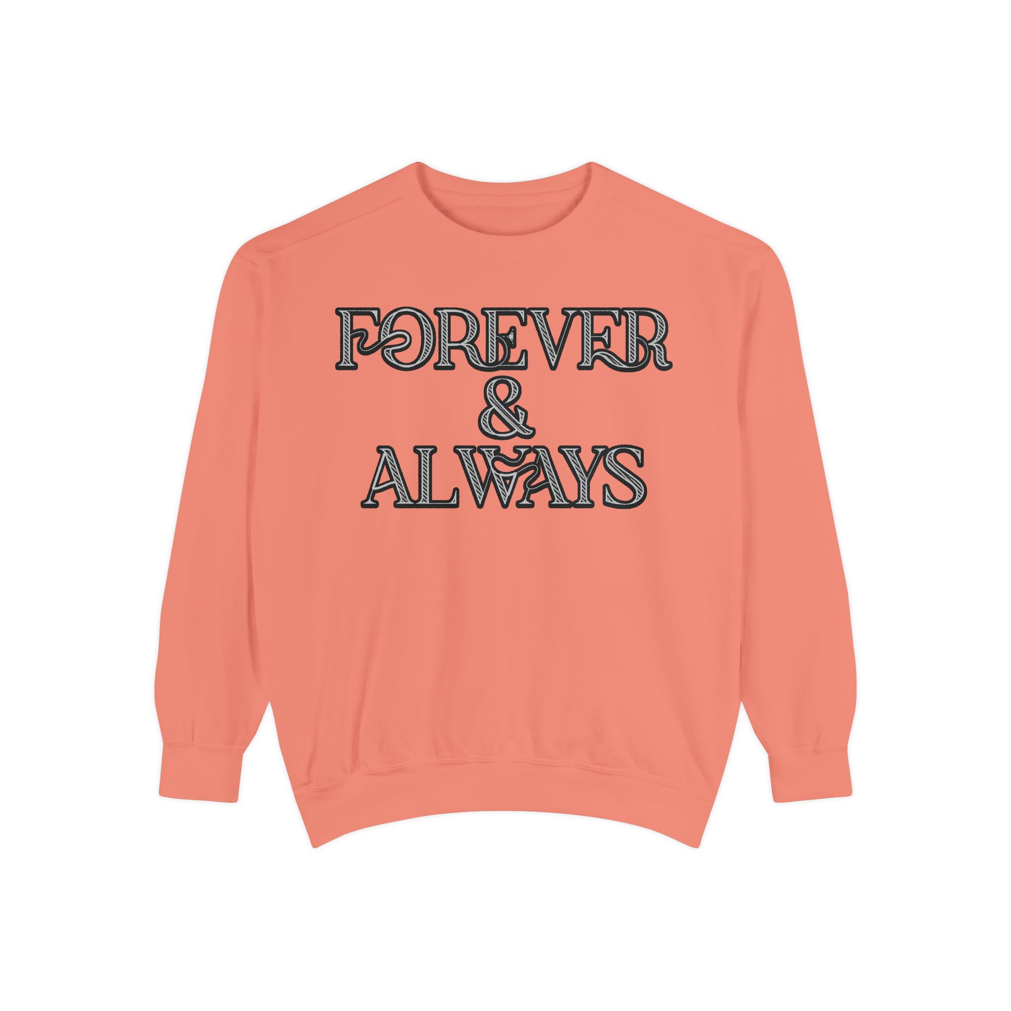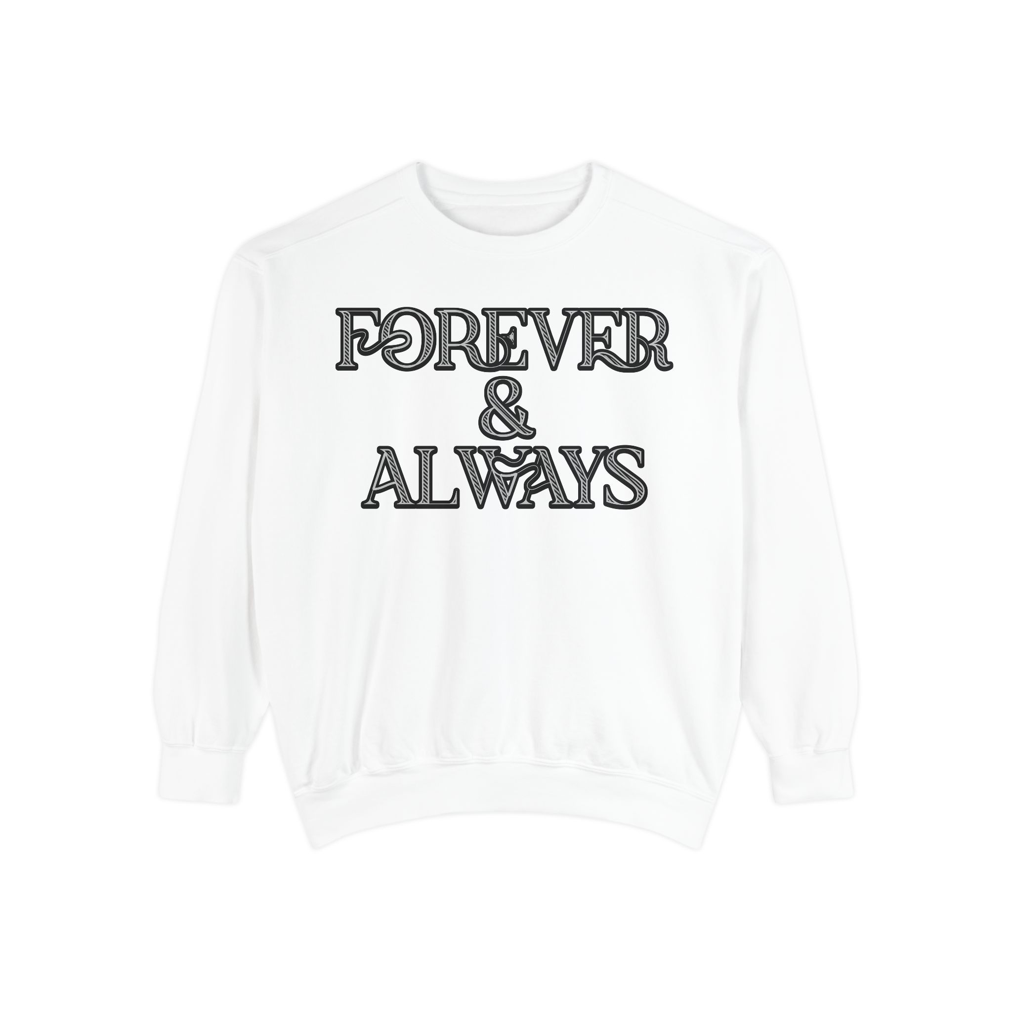 Embrace timeless elegance with our “Forever & Always” sweatshirt. Featuring a sophisticated black background and intricately designed white typography, this sweatshirt is perfect for those who value style and sentiment. The unique font and artistic ampersand add a touch of class, making it a standout piece in any wardrobe. Ideal for casual outings or cozy nights in, this sweatshirt combines comfort with a meaningful message. Shop now and make a lasting impression with this beautifully crafted design.